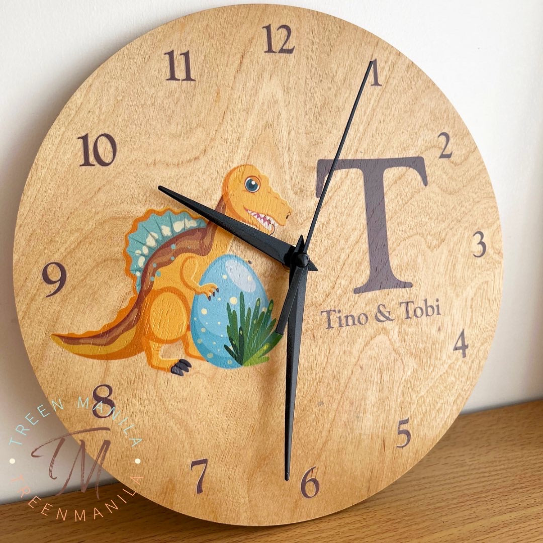 Overall, our Personalized Kids Clock with a Dinosaur theme is the perfect gift for any child who loves these prehistoric creatures. With its fun design and personalized touch, it's sure to become a cherished part of your child's room decor.