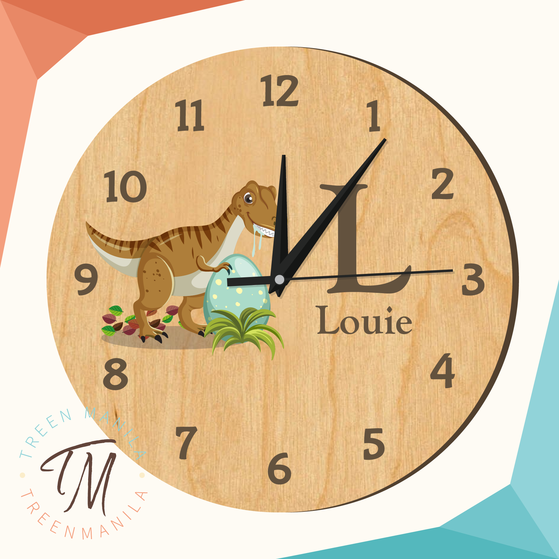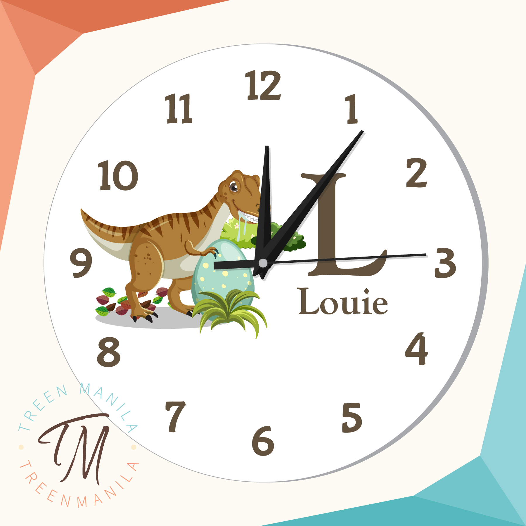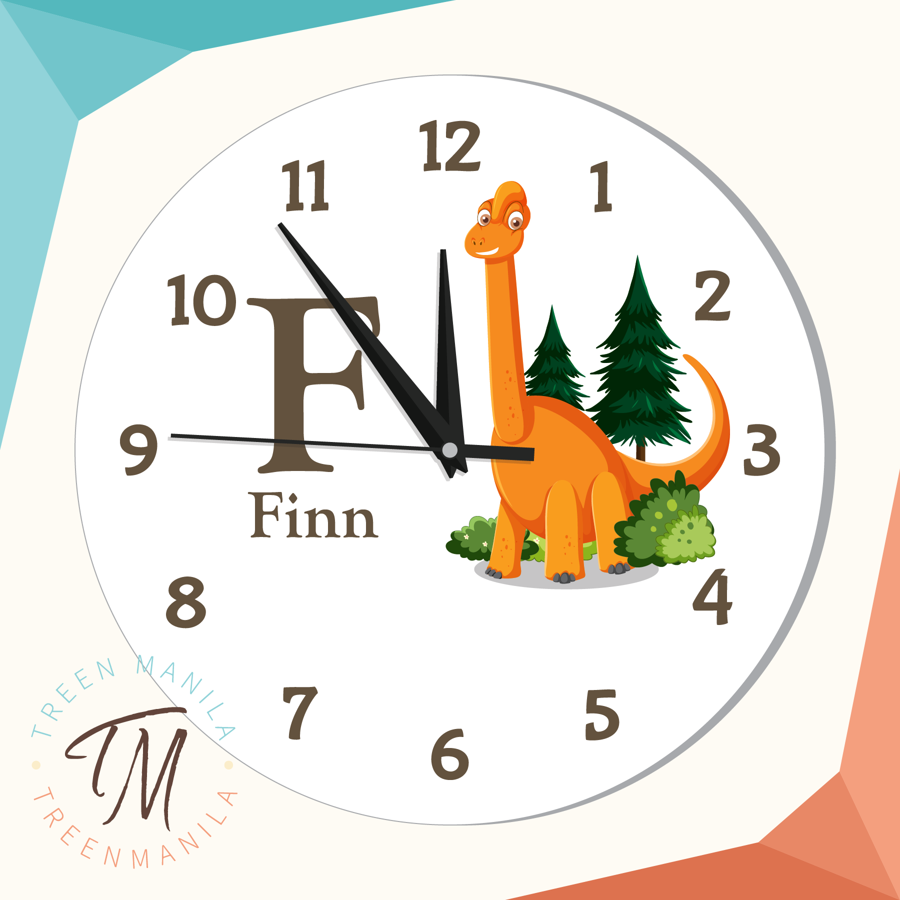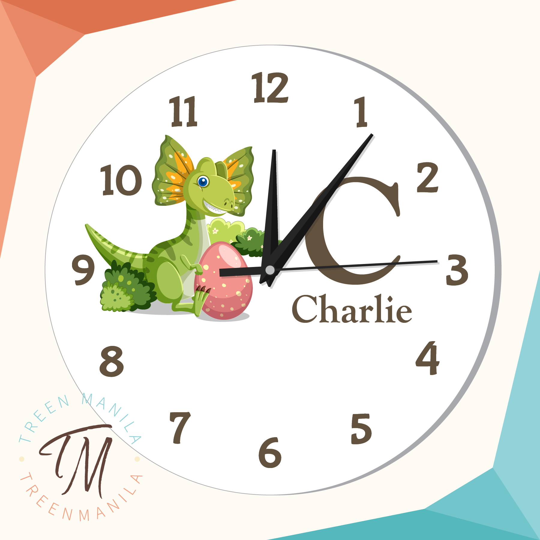 Introducing our Personalized Kids Clock with a fun Dinosaur theme! This clock is the perfect addition to any child's room, and will make learning to tell time a fun and exciting experience.