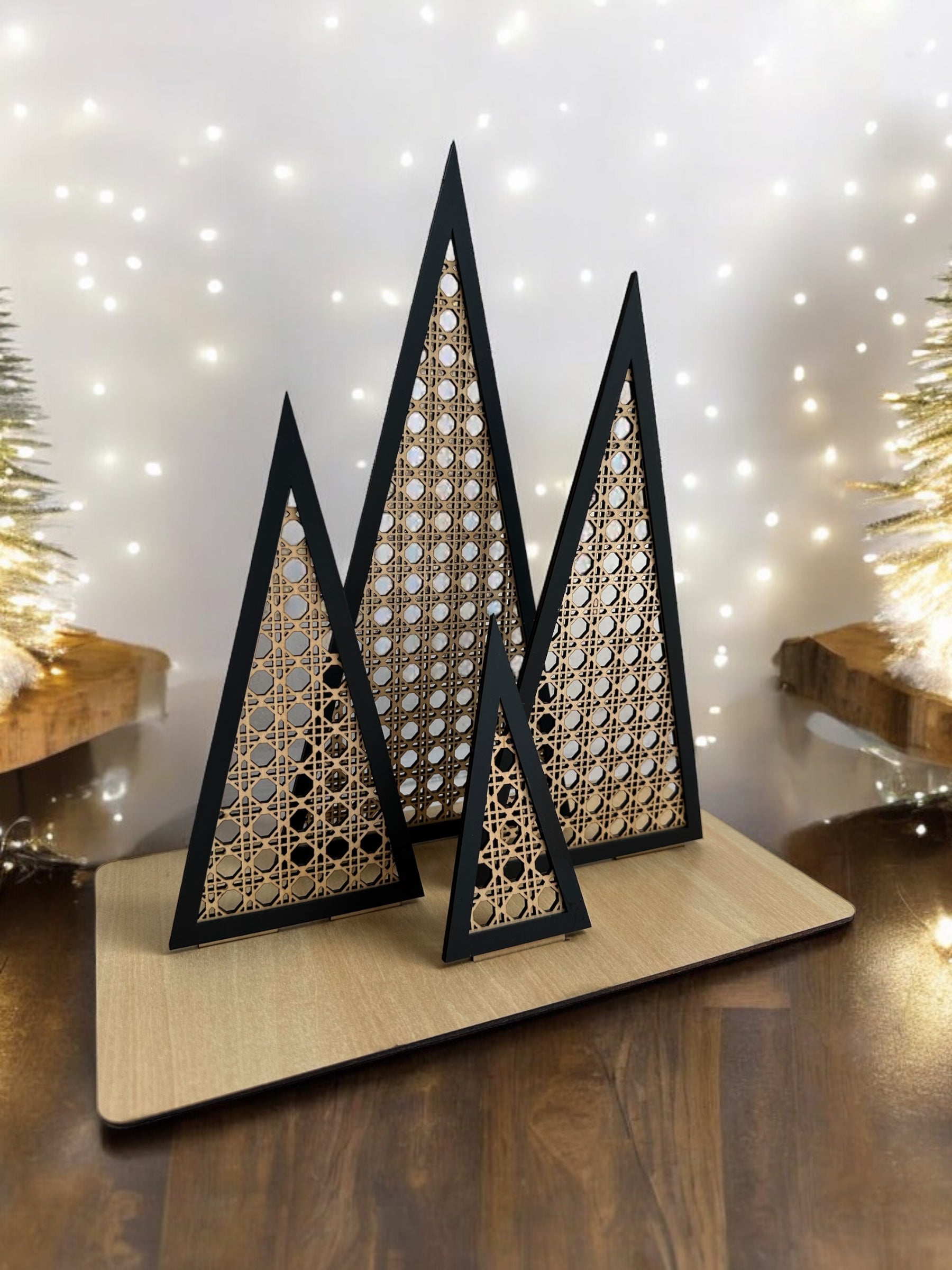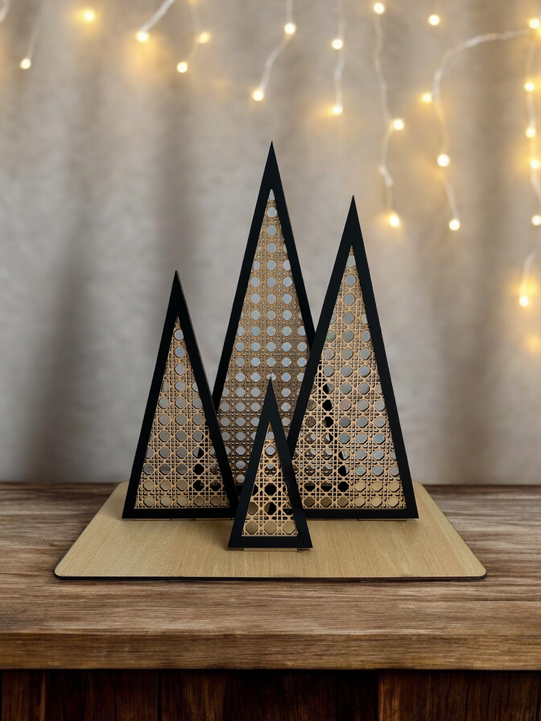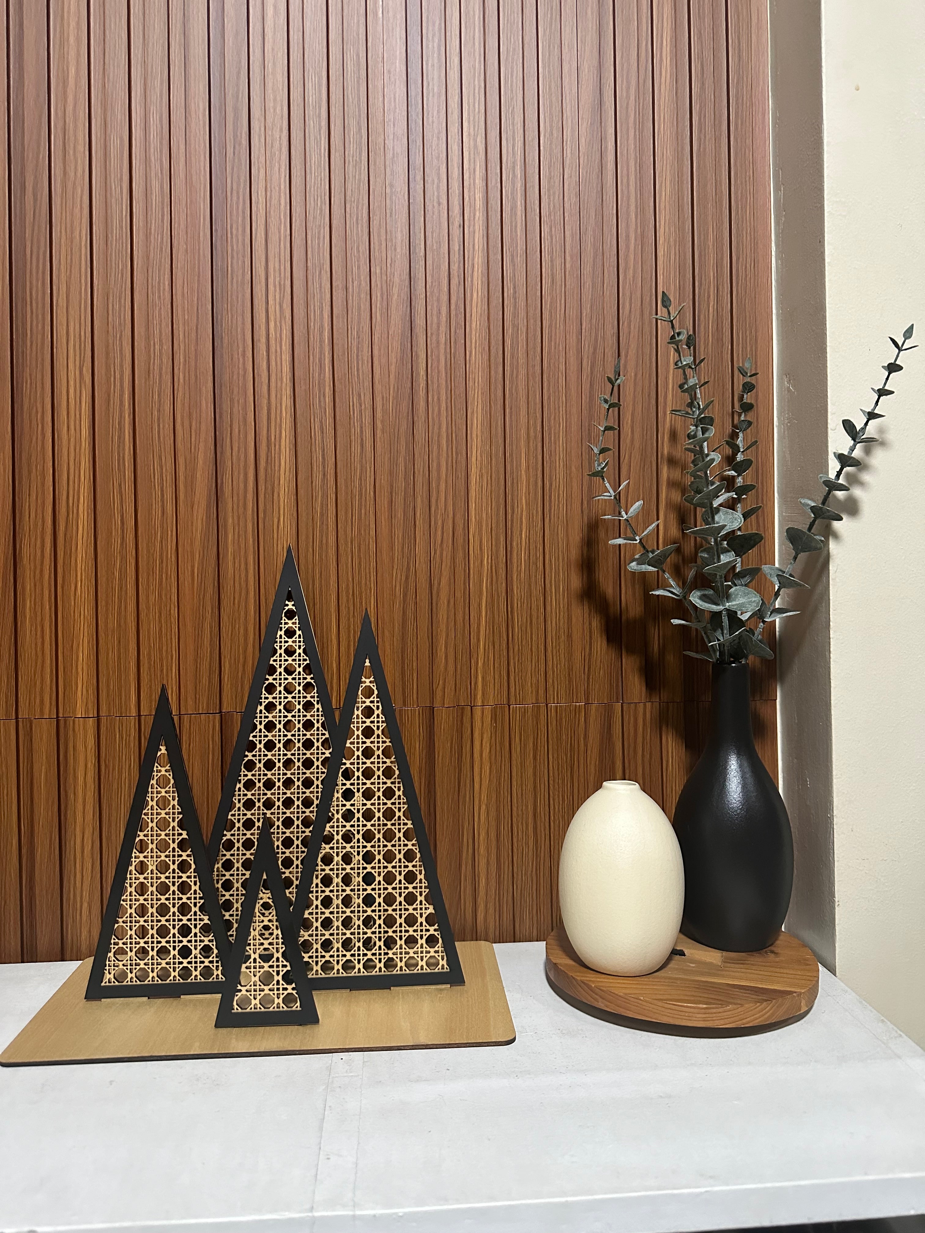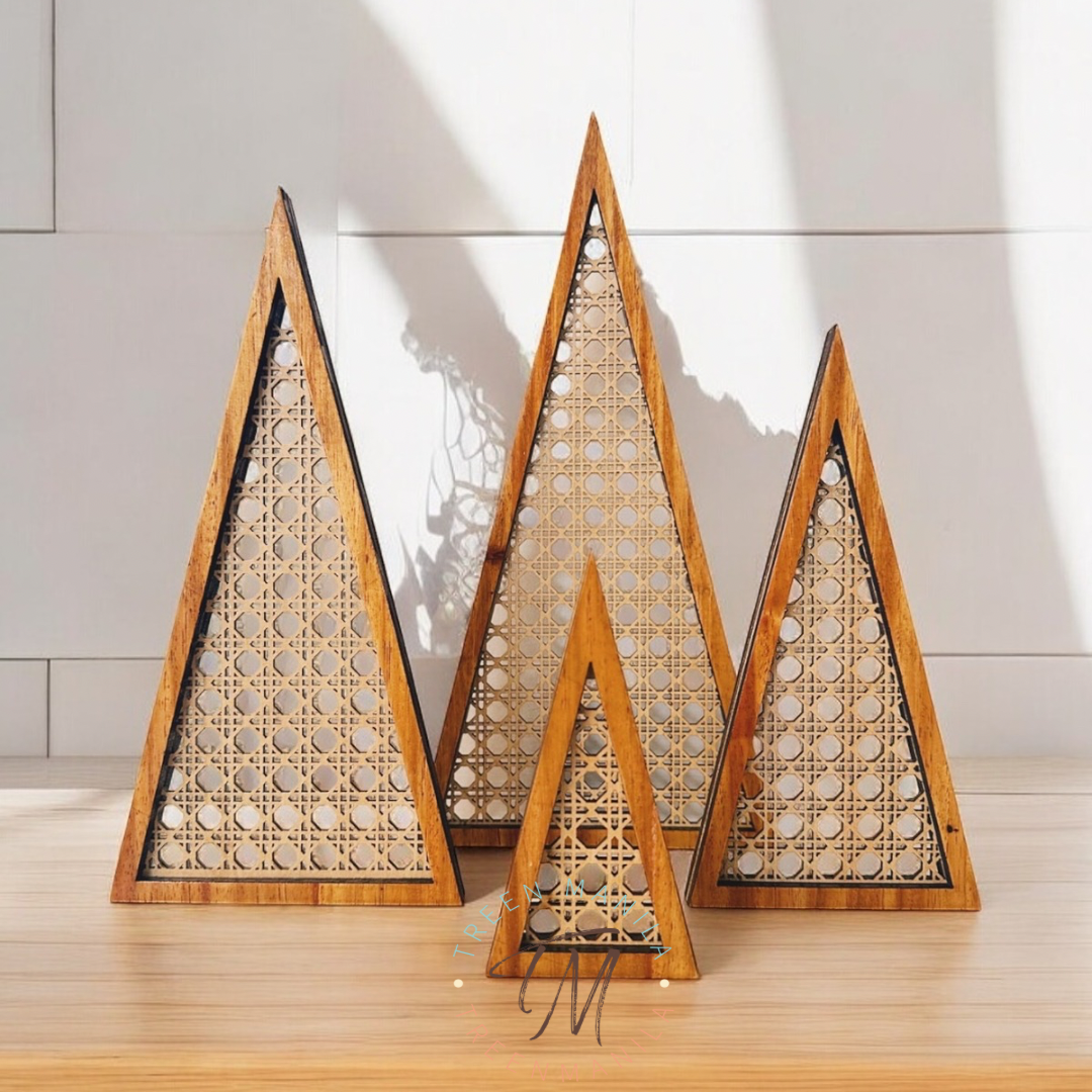 Introducing our stunning Miranda Solihiya Design Triangle Wooden Tree Set, a harmonious blend of tradition and modern aesthetics. Elevate your decor with this unique set of wooden trees, meticulously crafted with the intricate Solihiya weave pattern in wood, known for its cultural significance and timeless appeal.