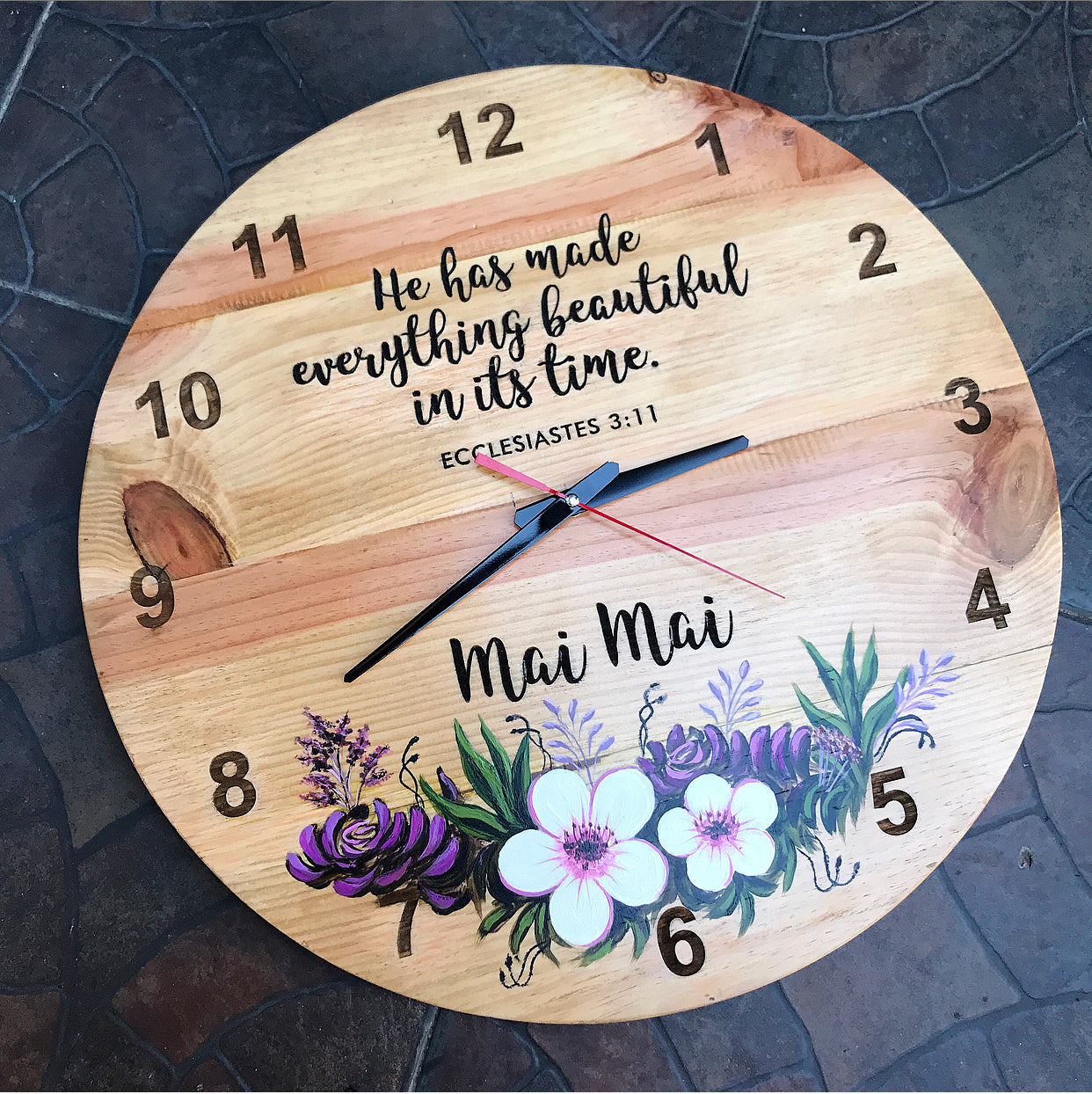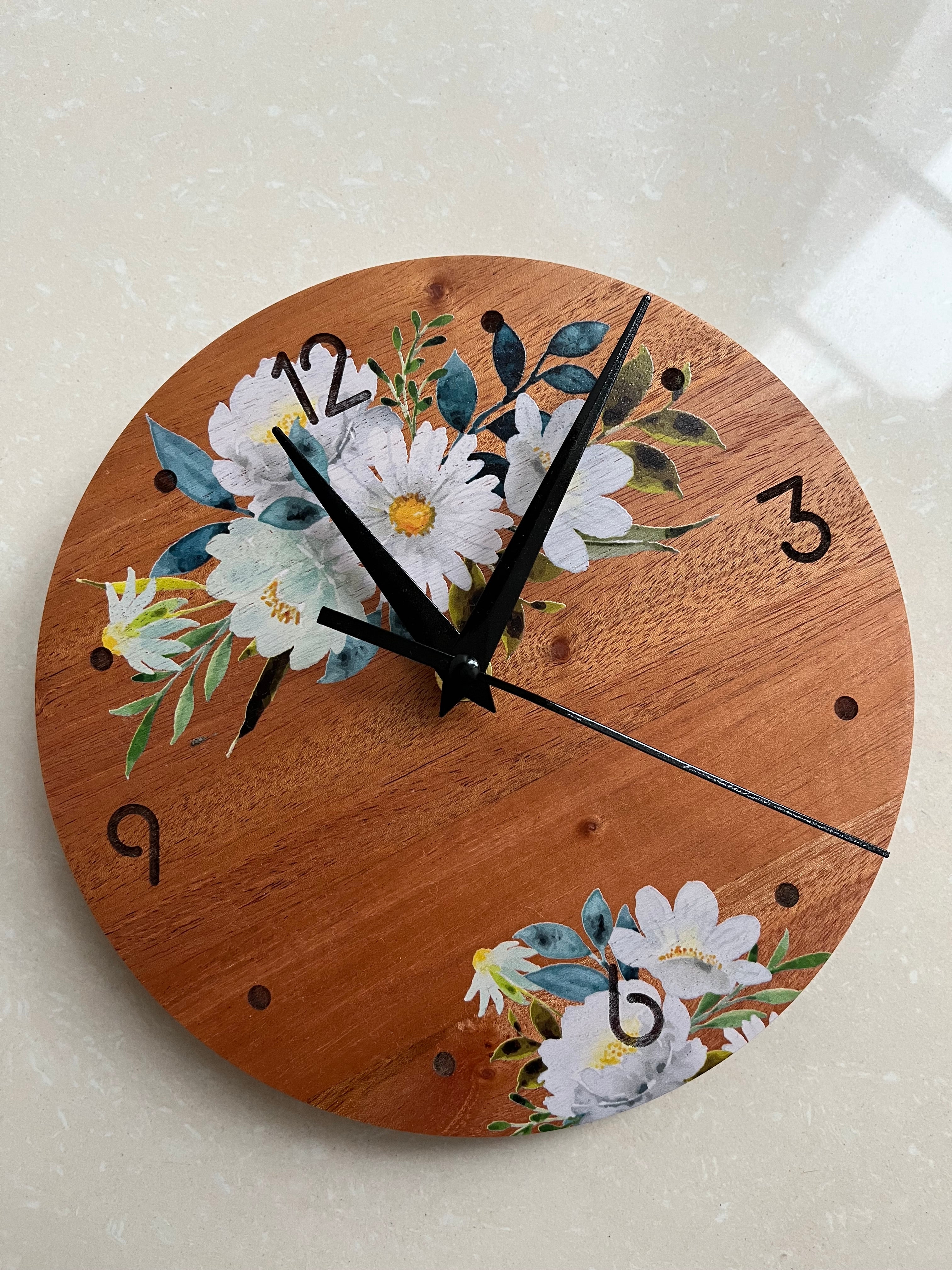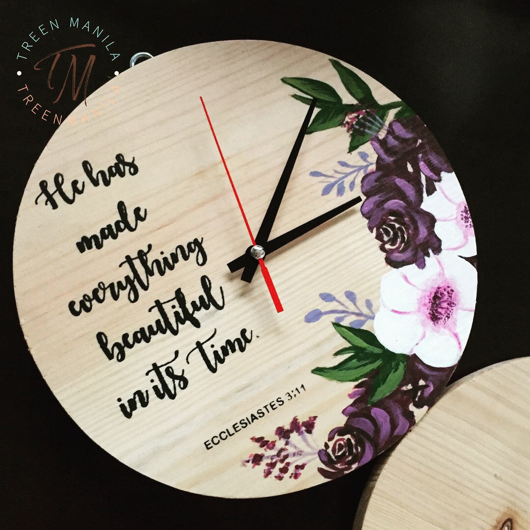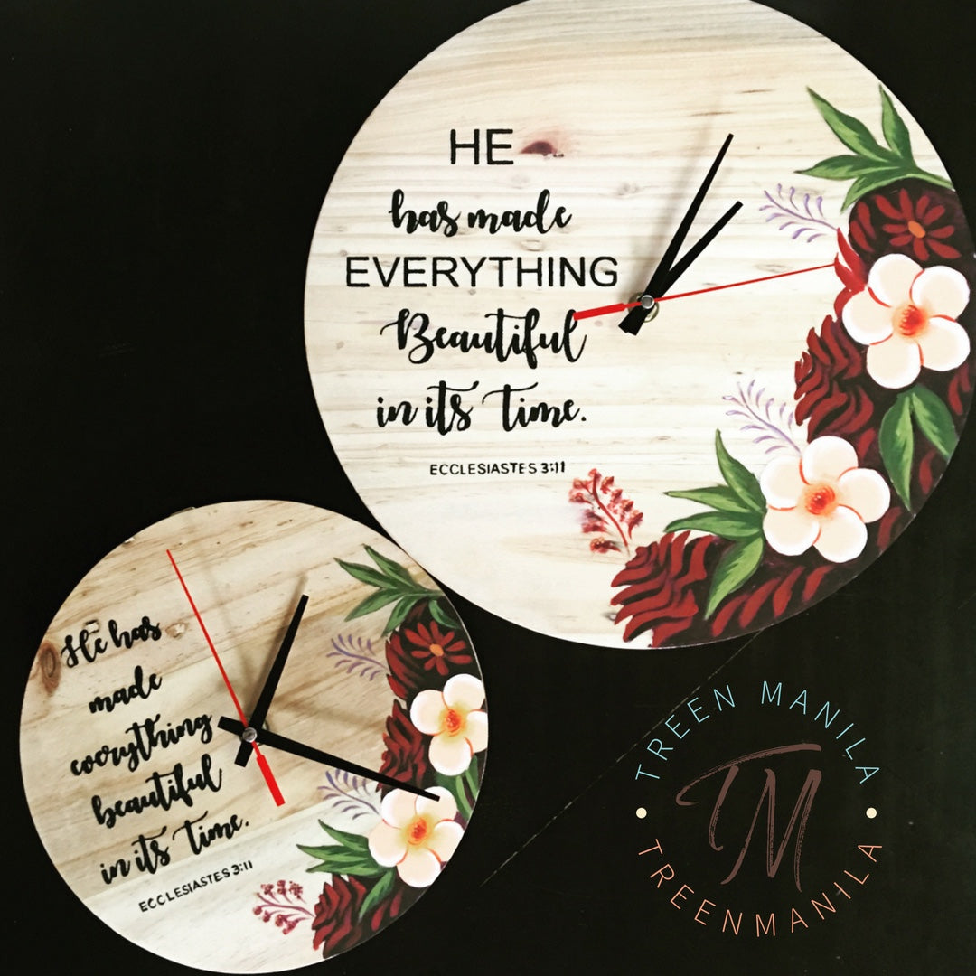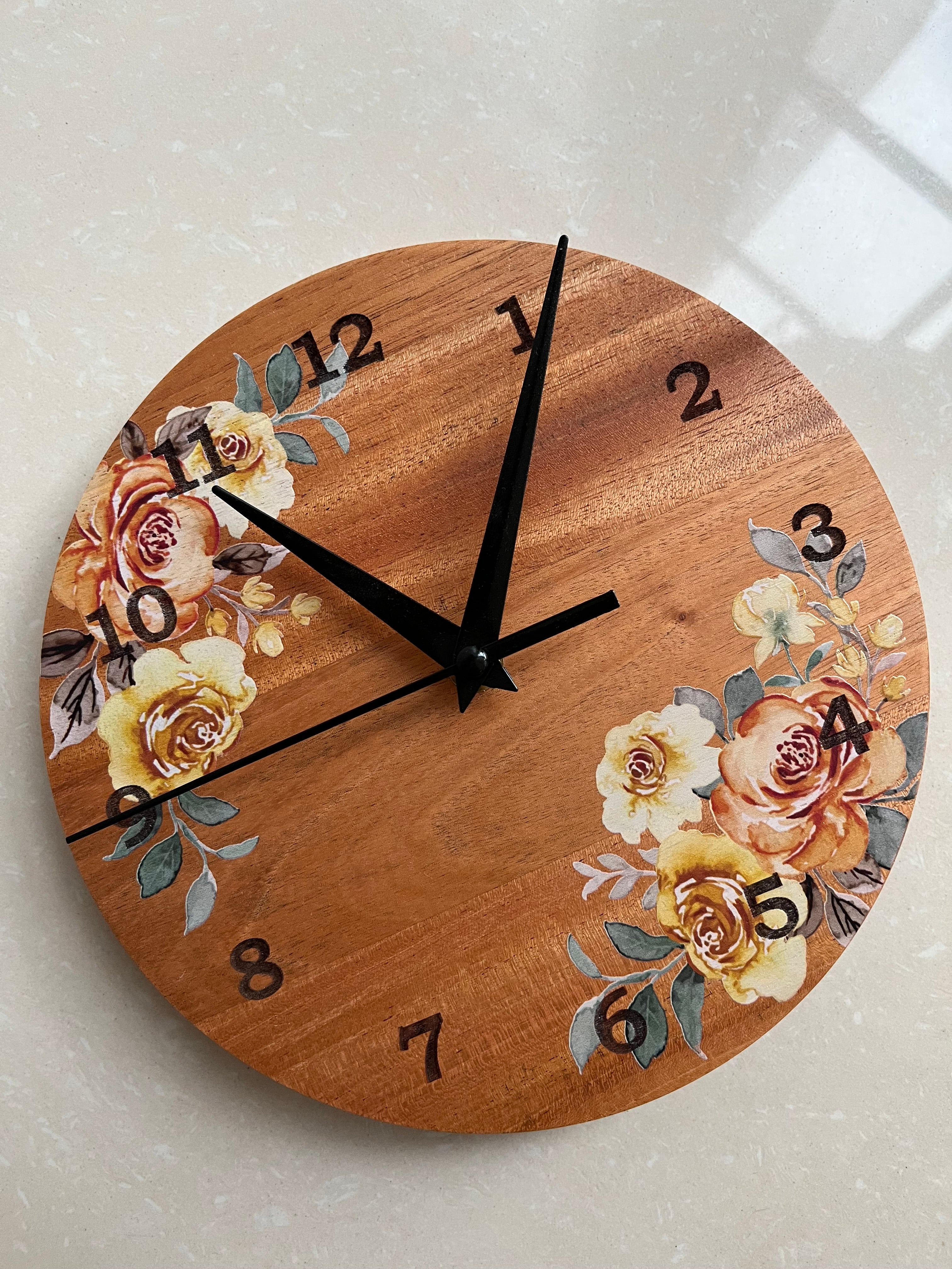 Our Pallet Clock is the perfect touch to any room aiming for that rustic look. Made of reclaimed pine wood that is 1/2" thick. It is made with individual slats of wood, hence the lines and grains you see are real. It is proudly handmade, from making the round wood to the design.