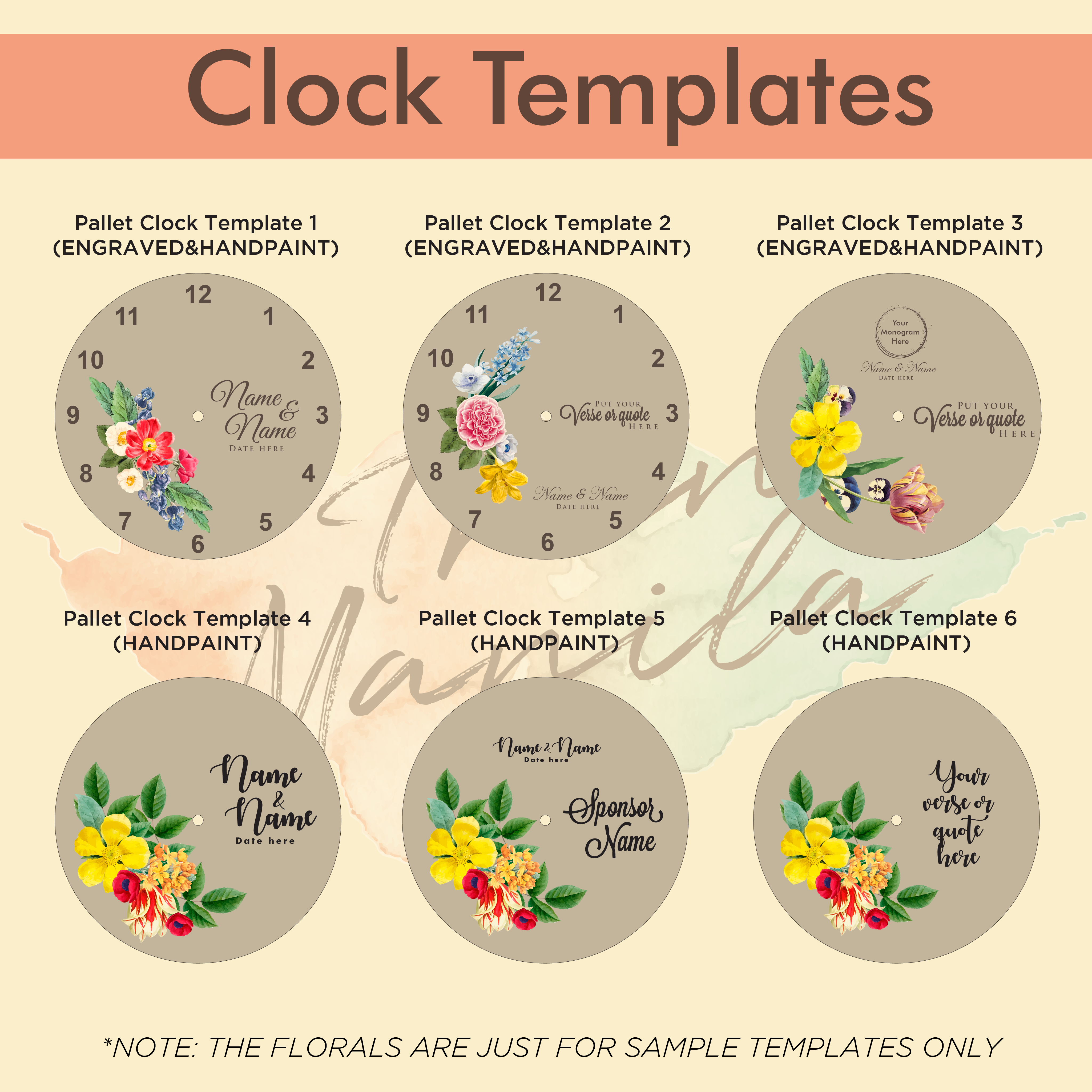 In placing you order/s: please input the specifics of your design(color, florals, names etc. in the special instruction part when checking out) and design template. Note that any elaborate designs of hand painting is subject to additional charges.