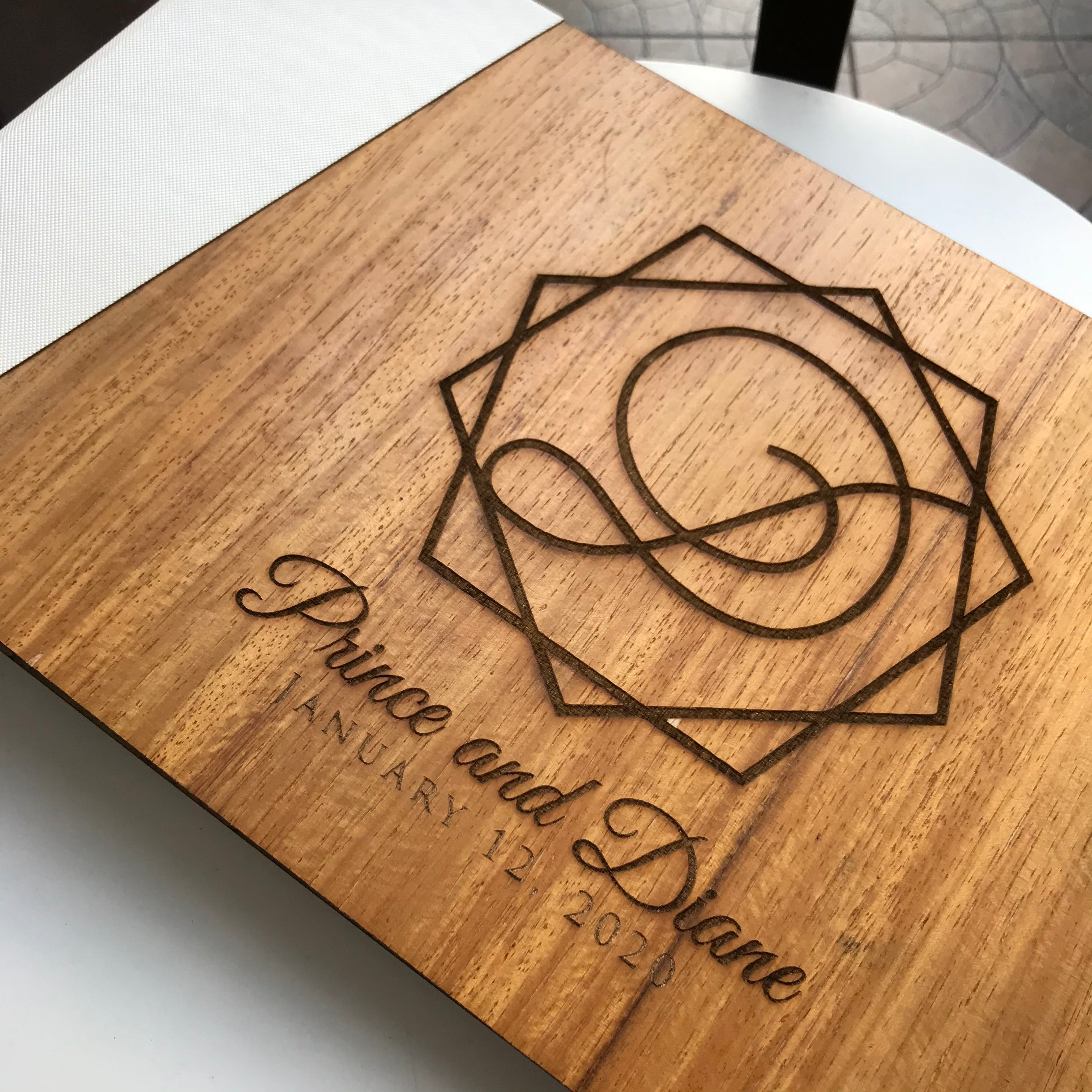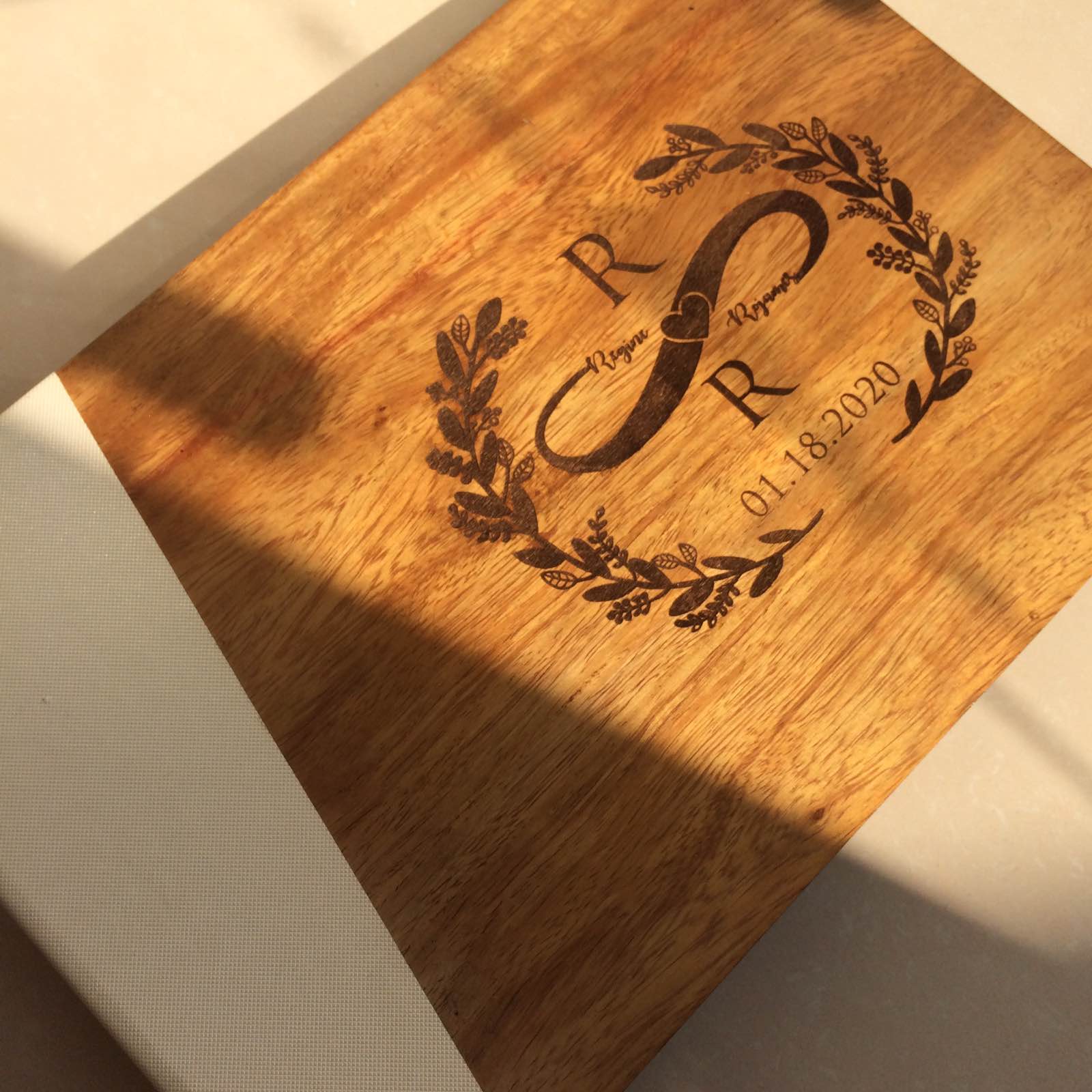 Please indicate the design details such as initials, names, dates and font choice on the special instruction box upon check out. Final Design layout will be sent for approval and cut & engraved combination will depend if design requested is possible. For monograms with lines that are thin, only pure engraving will be done on the wood.