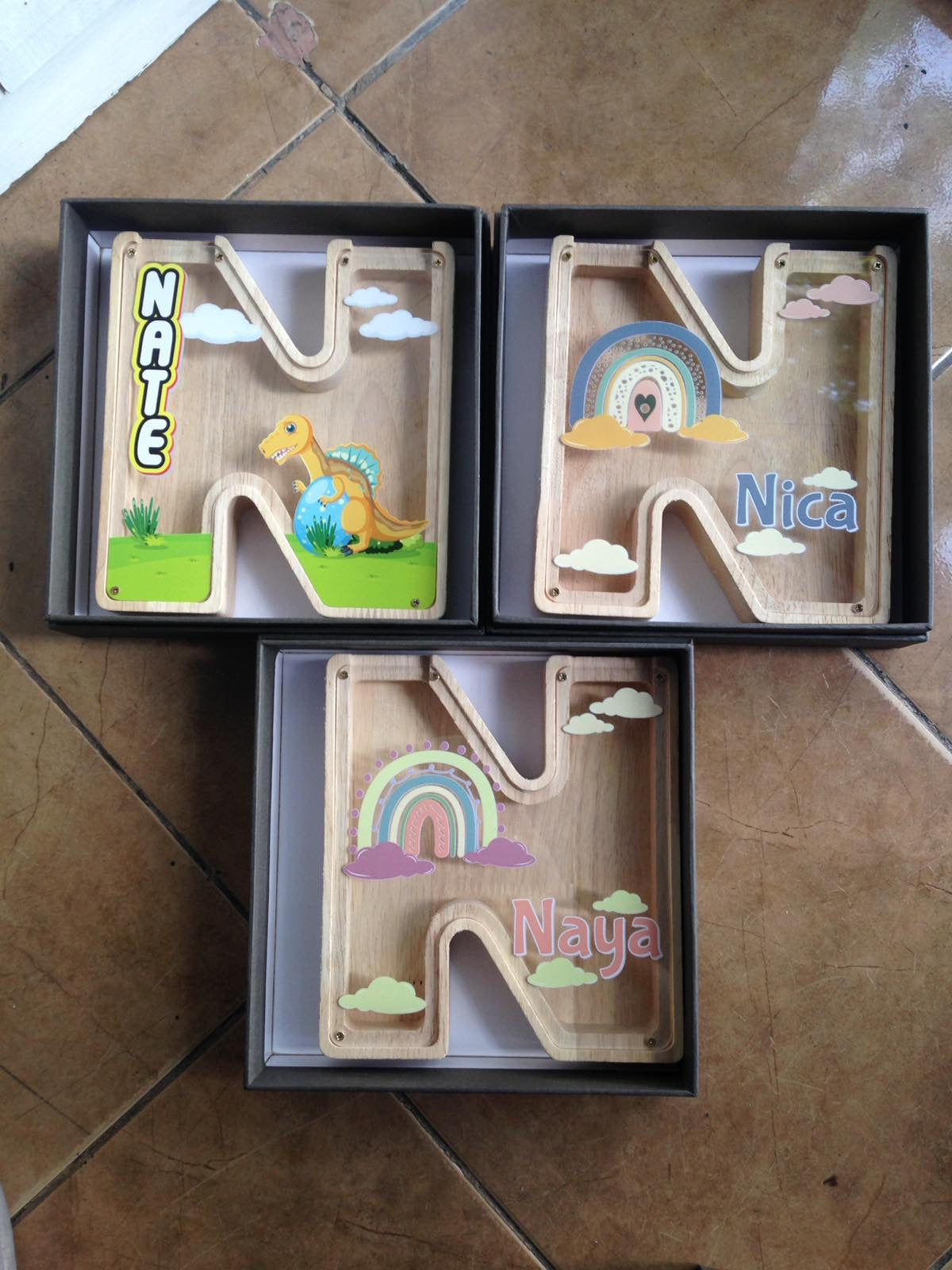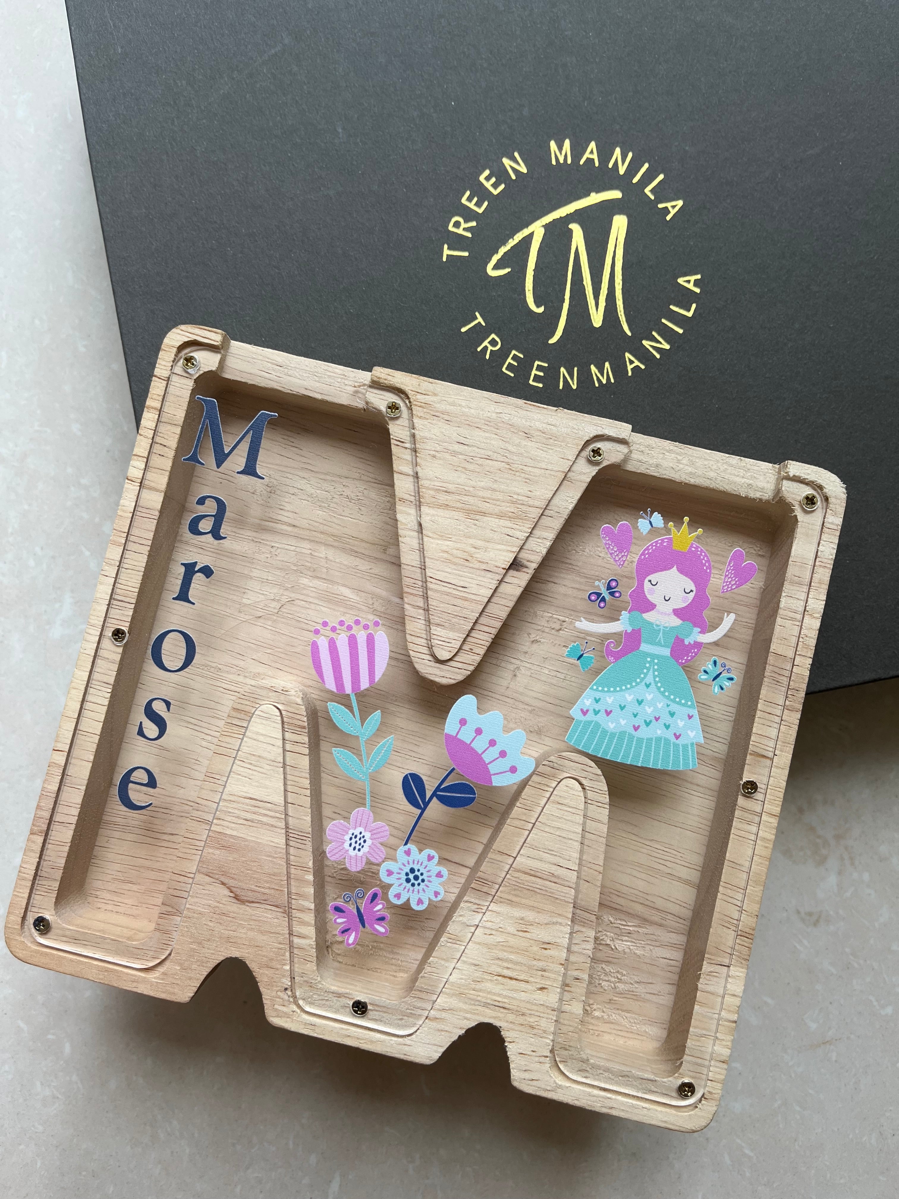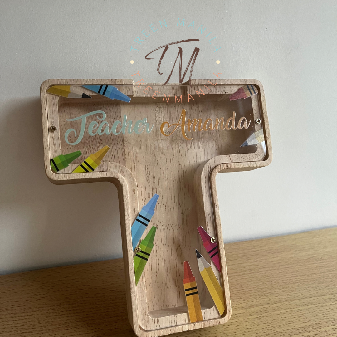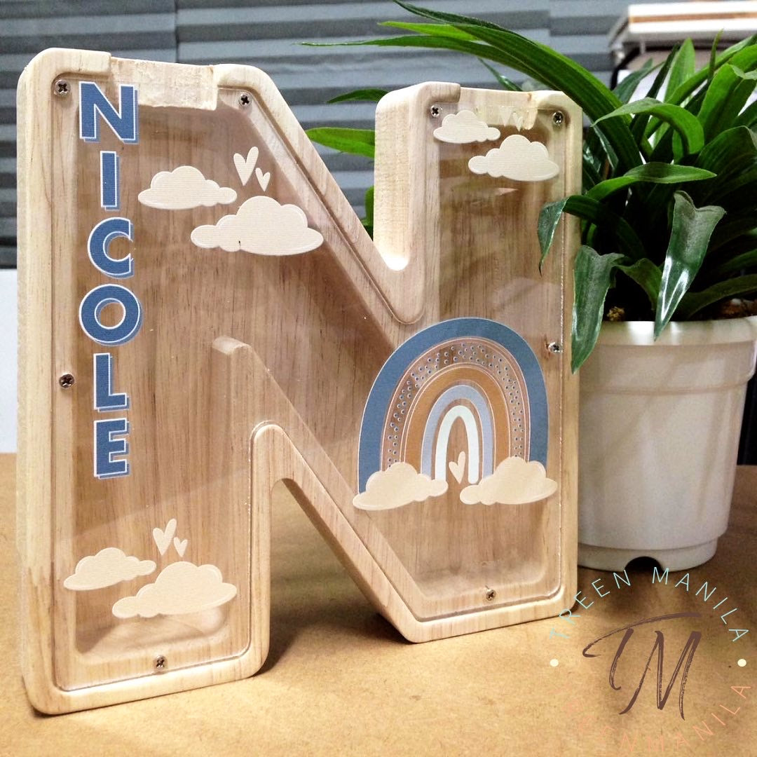 Our wooden letter coin bank makes a perfect gift to anyone, kids or adults for any occasion. The size is 7.5 inches in height (width varies per letter) with thickness of almost 2 inches. It is made of reclaimed pinewood, hence please manage expectation with the finishing) and clear acrylic with screws.