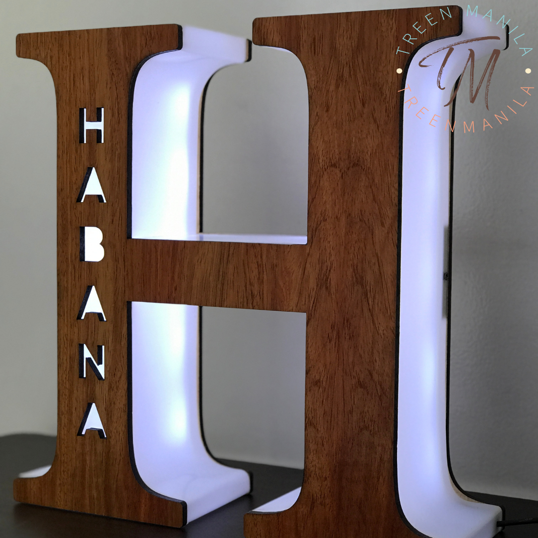 This wooden letter lamp makes a perfect gift to anyone for any occasion. Lovely functional home decor for newlywed couples, for kids' rooms, house warming gift, or even as gifts to principal sponsors.